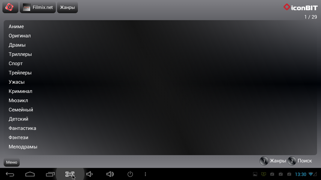 Количество контента в приложении «Медиацентр» для IconBit Toucan Stick 4K впечатляет