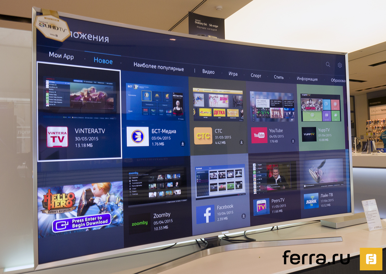 Само меню «Приложения» можно разделить на три основные вкладки: «Мои App», «Новое» и «Наиболее популярное». Их названия говорят сами за себя. Но есть и подкатегории: «Видео», «Игра», «Спорт», «Стиль», «Информация», «Образование». В плане количества источников контента Smart Hub действительно тяжело найти равных. В том числе в наличии множество игр.