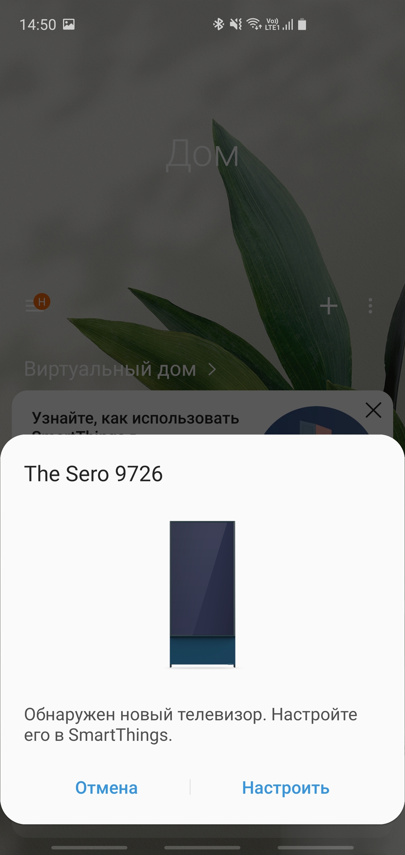 Подключаться автоматически к смартфону, даже если ты тупой. Я, например, тупой, и морально готовился нырять в меню и долго-нудно всё синхронизировать. Но смартфон Samsung и телевизор Samsung сами «увидели» друг друга, смартфон сказал «тут телевизор рядом, подключить его?» — и настроить телевизор получилось с Galaxy напрямую, даже при том, что телик и мобильник были подключены к разным сетям Wi-Fi.
