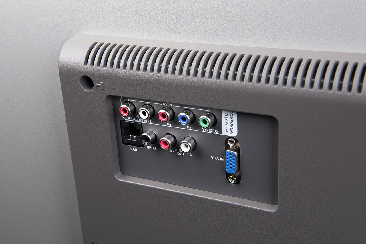 Блок питания — встроенный. Интерфейсы разведены на два отсека. На торце логично расположились три порта HDMI. Все поддерживают подключение источника с разрешением 4K и частотой 60 Гц. Там же распаяно два USB-порта. Один второй ревизии с током 0,5 А, второй — третьей версии и 0,9 А соответственно. Внешние жесткие диски определяются и работают без каких-либо проблем. Чуть забегая вперед: телевизор умеет записывать видеопоток на USB-носитель.
