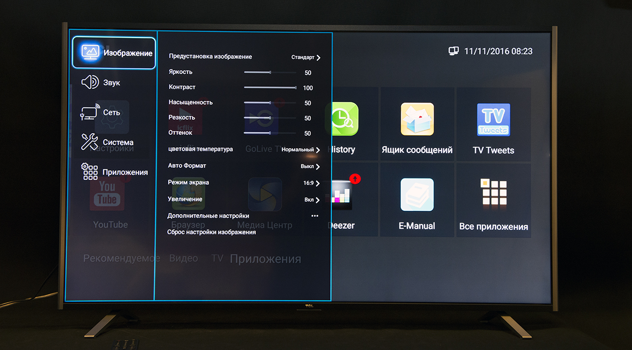 В TCL L50C1US используется матрица компании AU Optronics. В C1US применены экраны Samsung. Покрытие — глянцевое. Так что блики на экране присутствуют. Когда говорим о TCL L50C1US — говорим не просто об HDR, но о стандарте DolbyVision. Он калибрует дисплей под каждый кадр. Палитра, контраст, свечение — все эти параметры меняются ежесекундо. Самостоятельно распознается тип матрицы телевизора и подстраивается под его характеристики. Естественно, под все это дело нужен соответствующий контент.