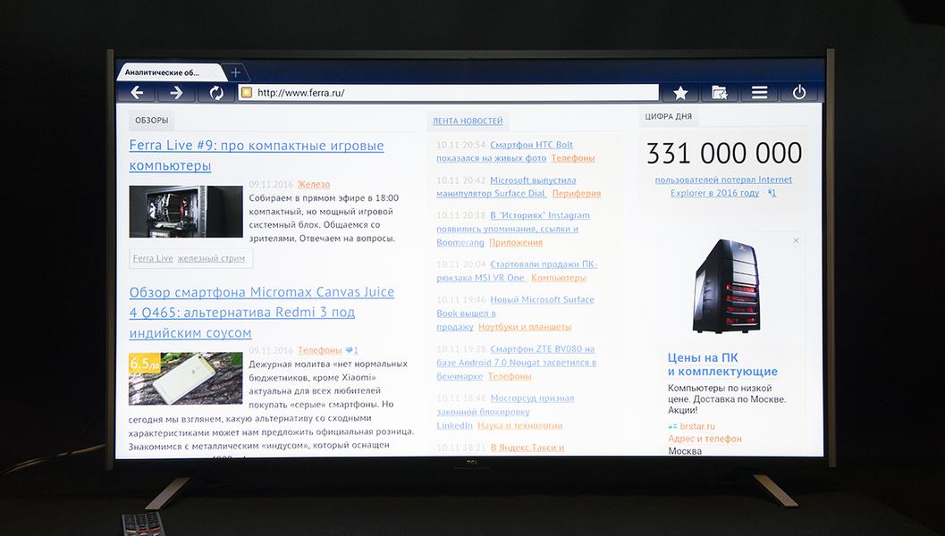С Ultra HD все ясно. Но даже в 2016 году основная часть видеоконтента идет с меньшим разрешением. TCL L50C1US хорошо апскейлит изображение. Формат 1080p масштабируется великолепно, а 720p — вполне терпимо.