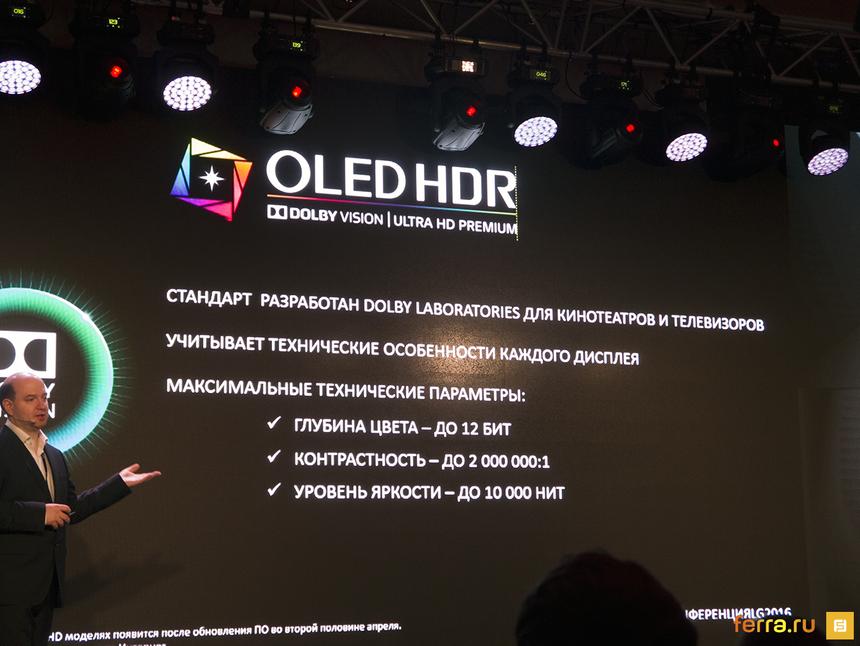 Артём Стрельбицкий, руководитель направления маркетинга телевизионной и IT-продукции LG в России, во время презентации указал на то, что абсолютное большинство видеоконтента, будь он снят профессионалом или любителем, в любом случае ужато до качества 8 бит на канал. Все OLED-матрицы этого года получили полную поддержку 10 бит. Следовательно, количество полутонов составляет один миллиард. Это дает определенный запас прочности, ведь 10-битного контента становится все больше.